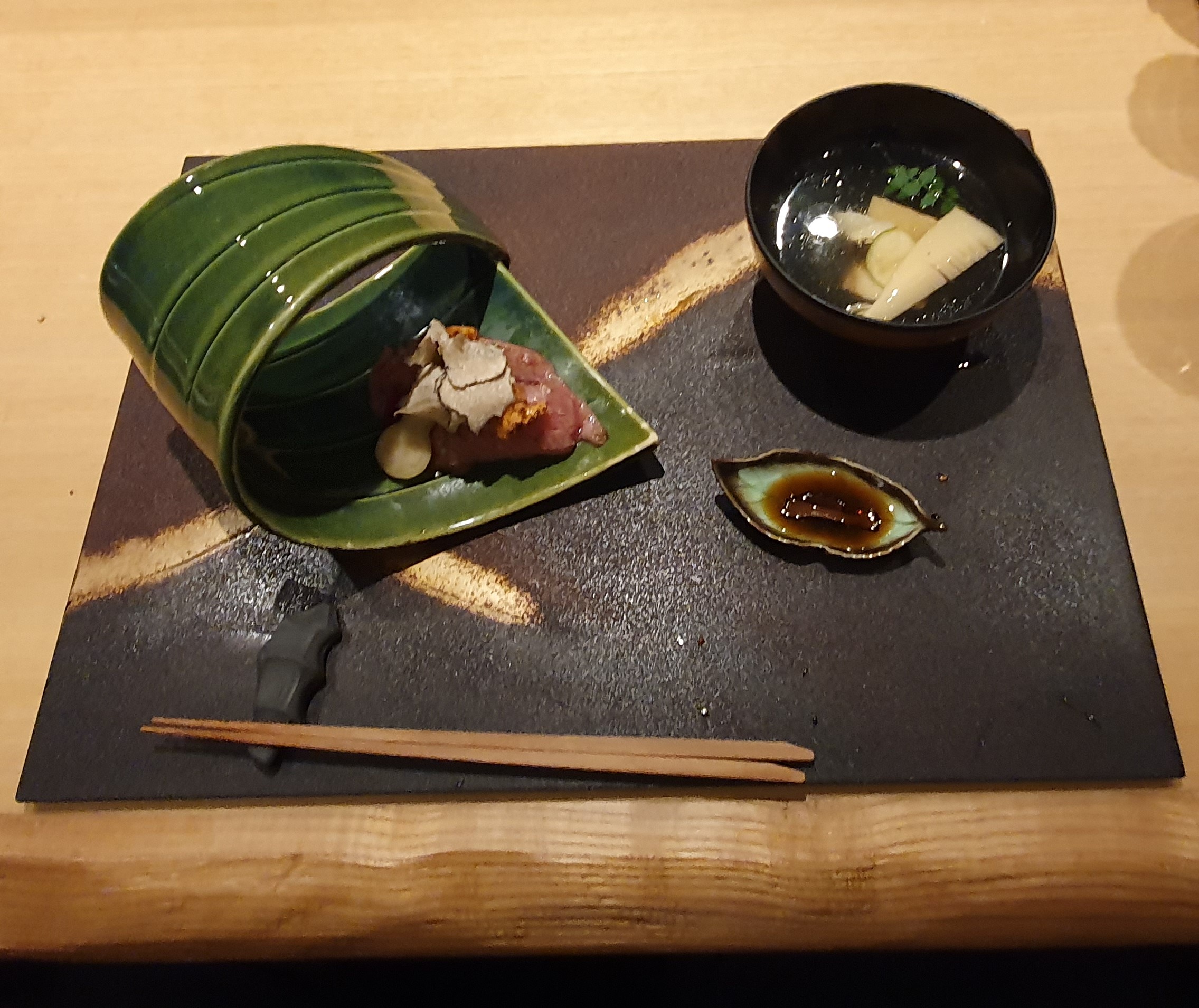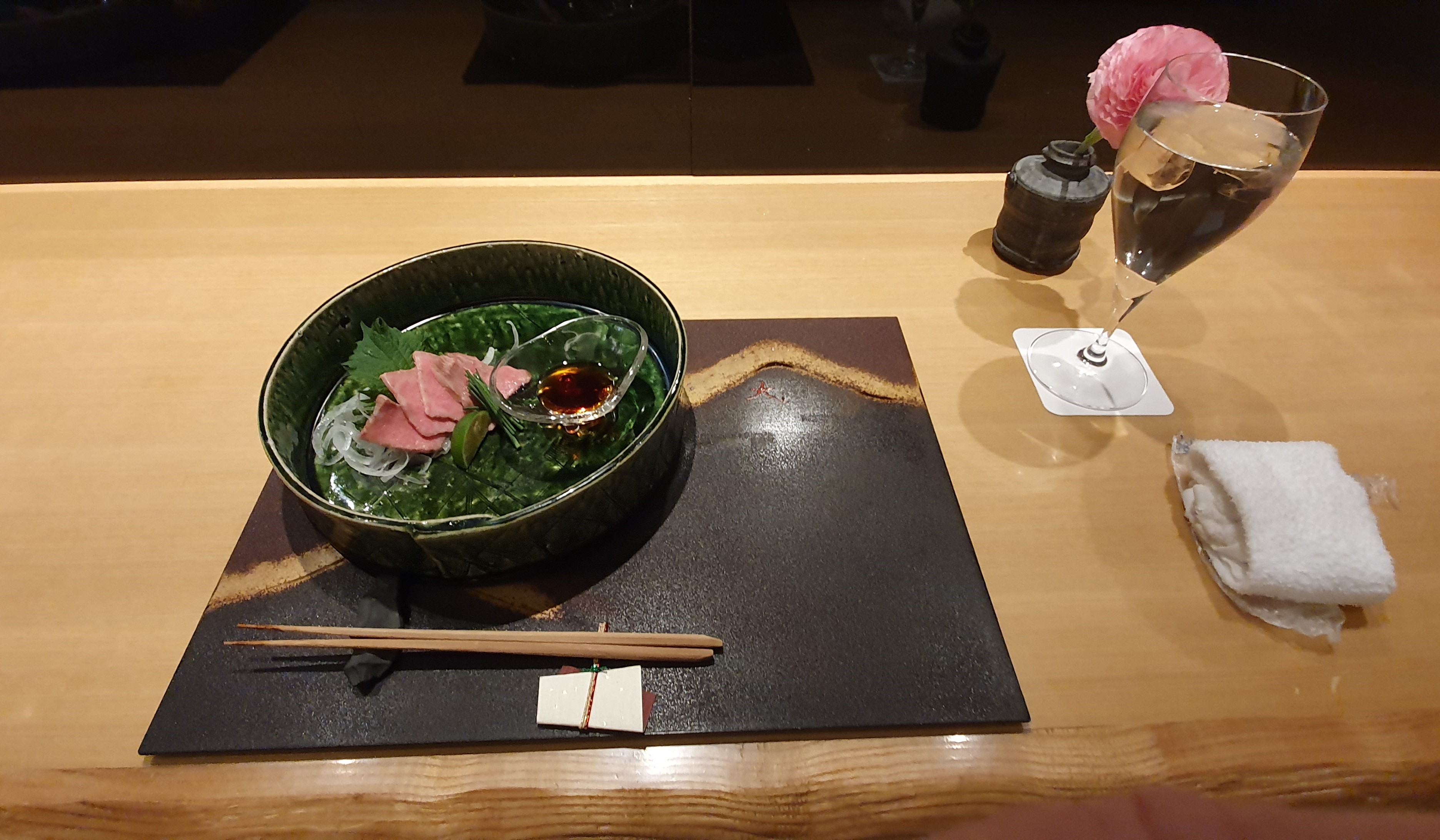 I Japan får vi uppleva atmosfärer och en helhet som sträcker sig utanför menyn. Interiörer, tallrikar, koppar och bestick som alla bidrar till helheten. Unika atmosfärer, underbara smaker och kvalitet integrerat med wabi, sabi och fuzei...
